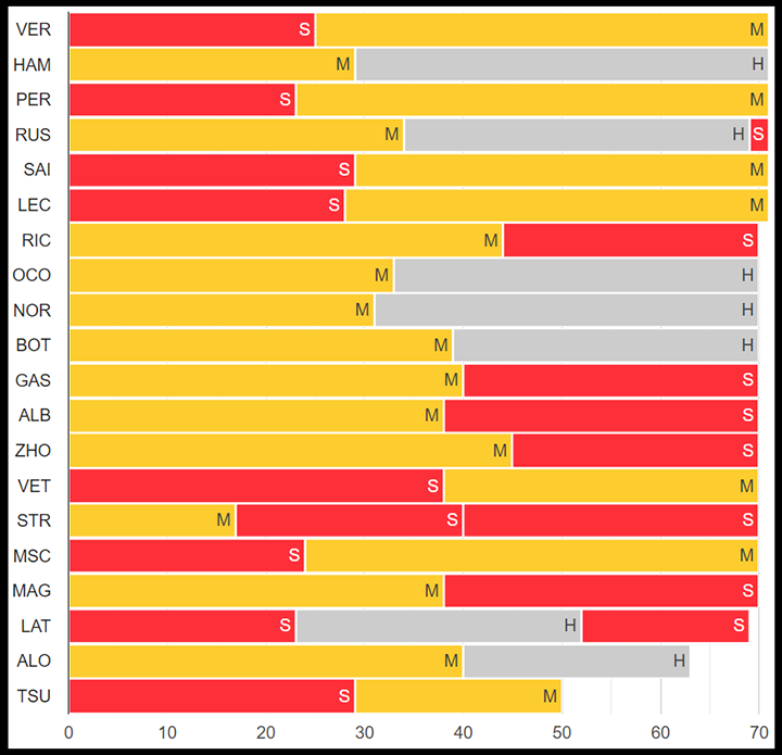 드라이버들의 타이어 교체 전략( C2 하드◎, C3 미디엄◎, C4 소프트◎ )