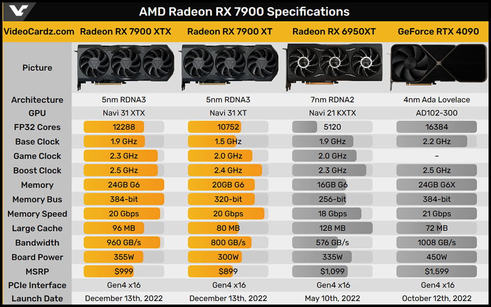 AMD 라데온 RX 7900 시리즈 상세 스펙