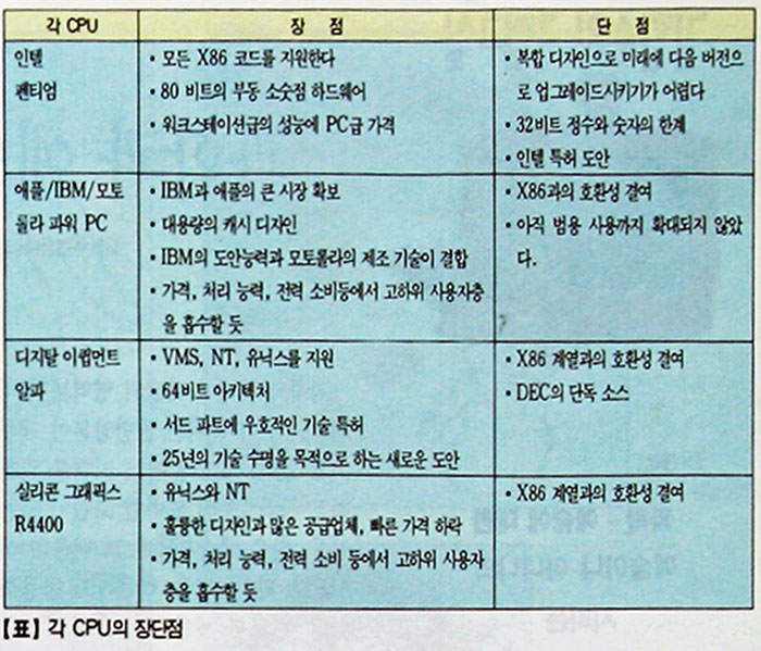 그렇다면 알파 PC나 펜티엄 PC 역시 아직은 개발자나 연구자들이 사용할 정도의 고급 시스템에 속할 것이며, 94년 하반기나 95년에나 가야 일반 사용자들이 직접 조작하면서 응용할 수 있는 시스템으로 자리잡을 수 있을 것이다.