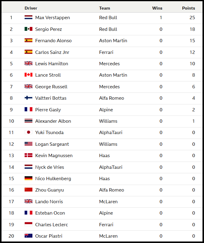 (F1 2023 Bahrain GP Race Results)