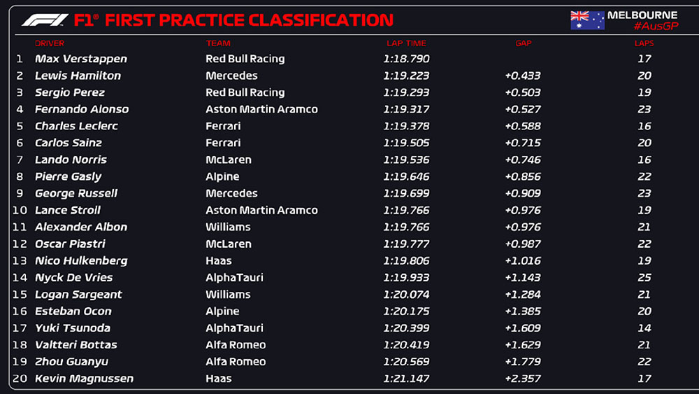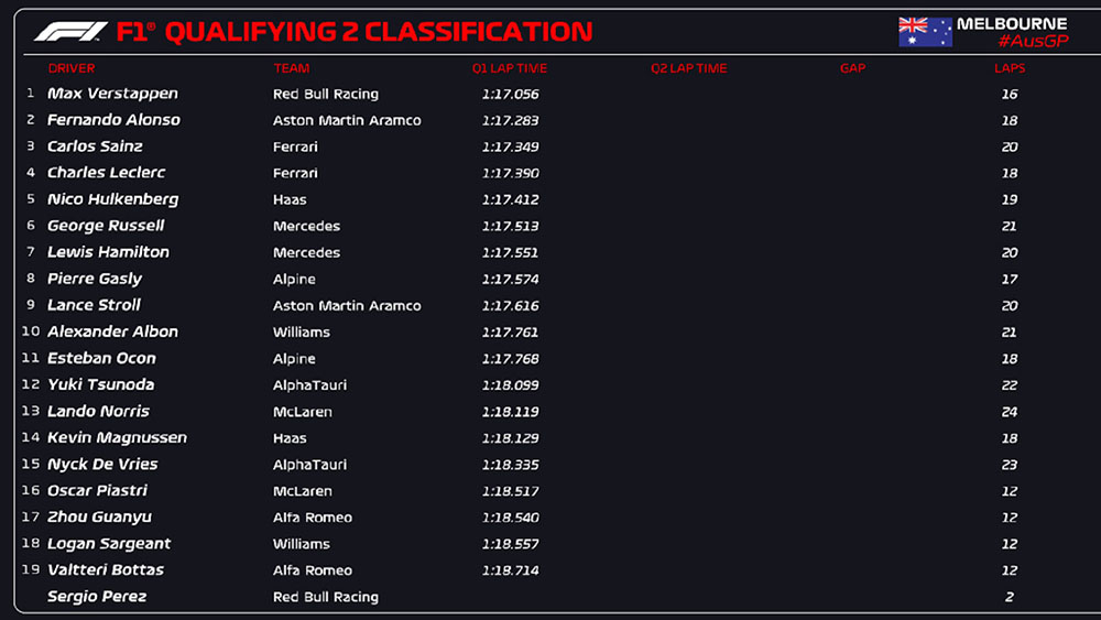 F1.2023.R03 - 호주 그랑프리 예선 결과