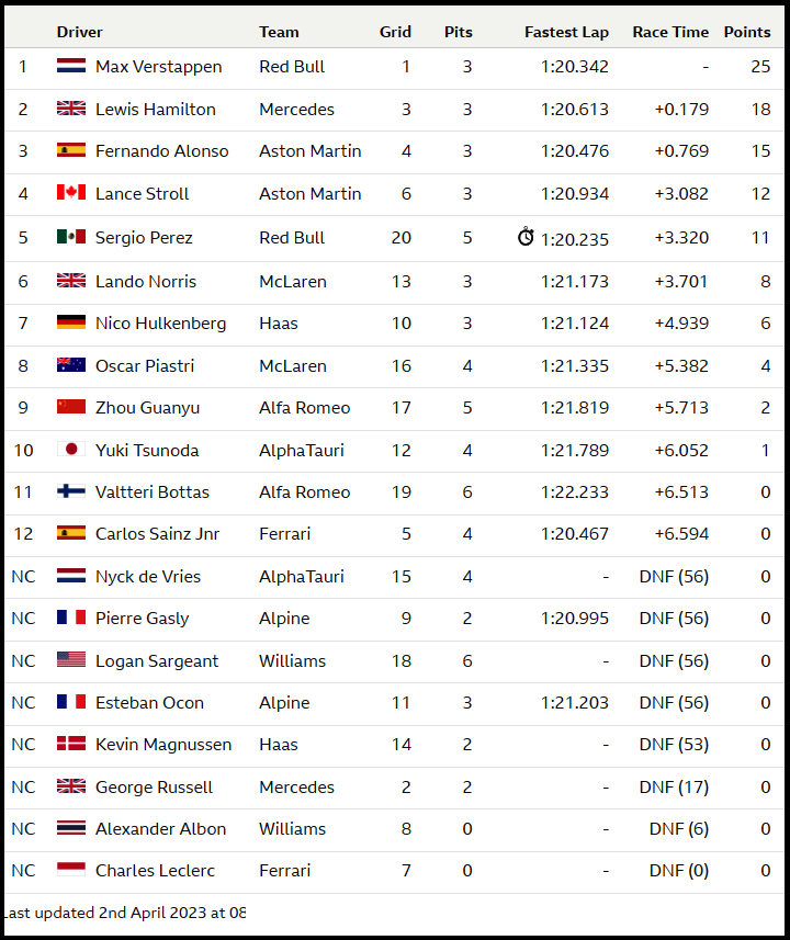 ( F1 2023 Australia GP Race Results )