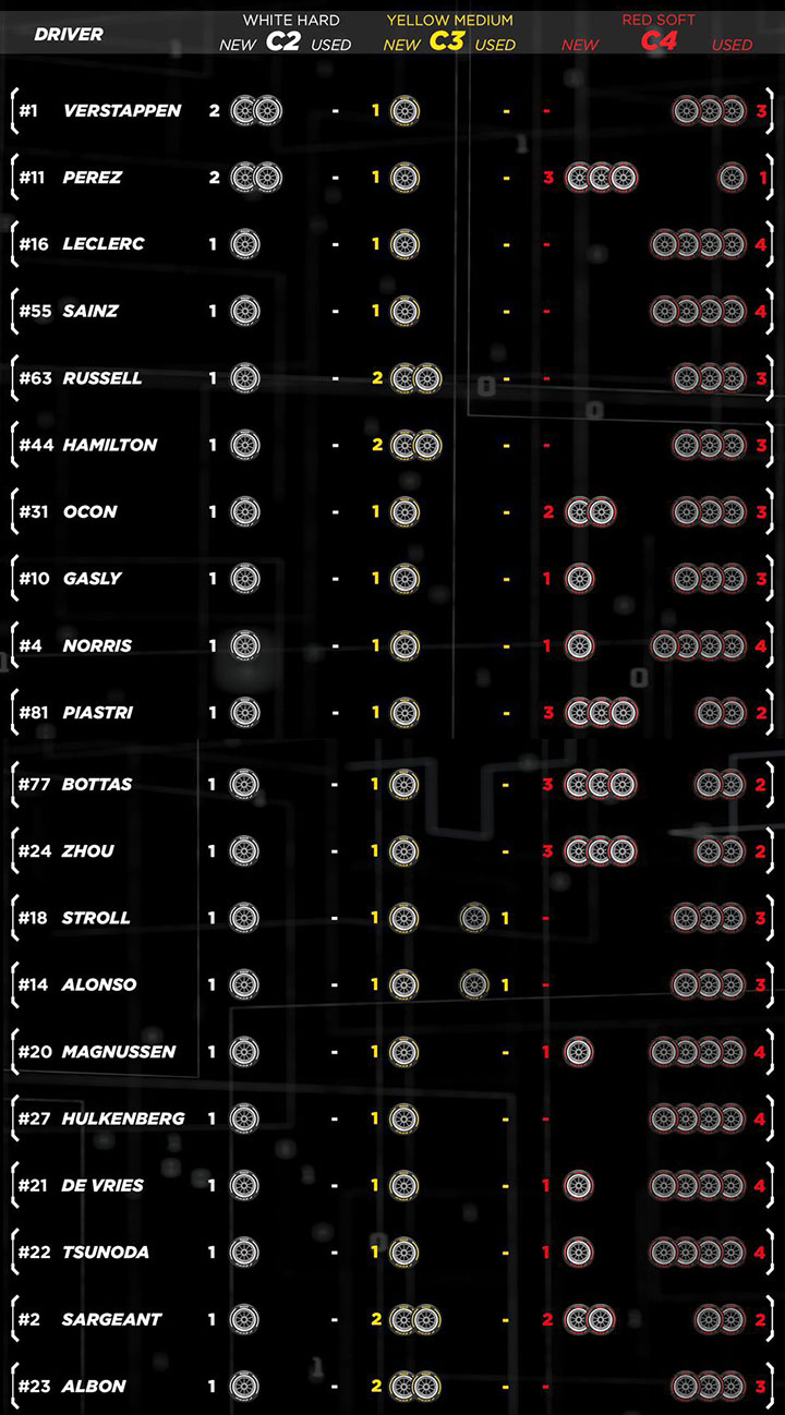 사용 타이어 세트( C2 하드◎, C3 미디엄◎, C4 소프트◎ )