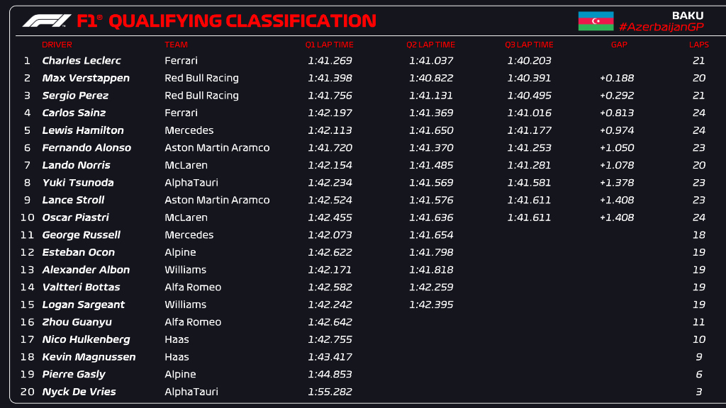 (F1 2023 Azerbaijan GP Qualifying Results)