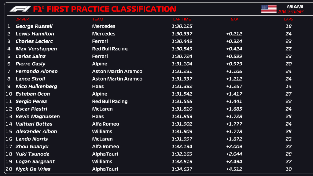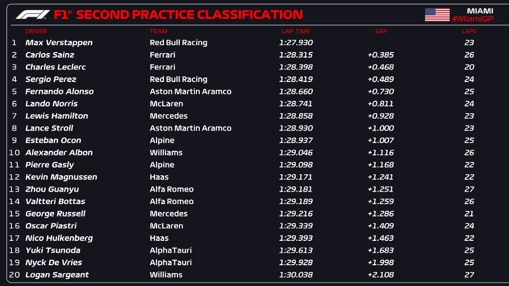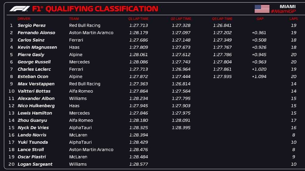 F1.2023.R05 - 마이애미 그랑프리 예선 결과