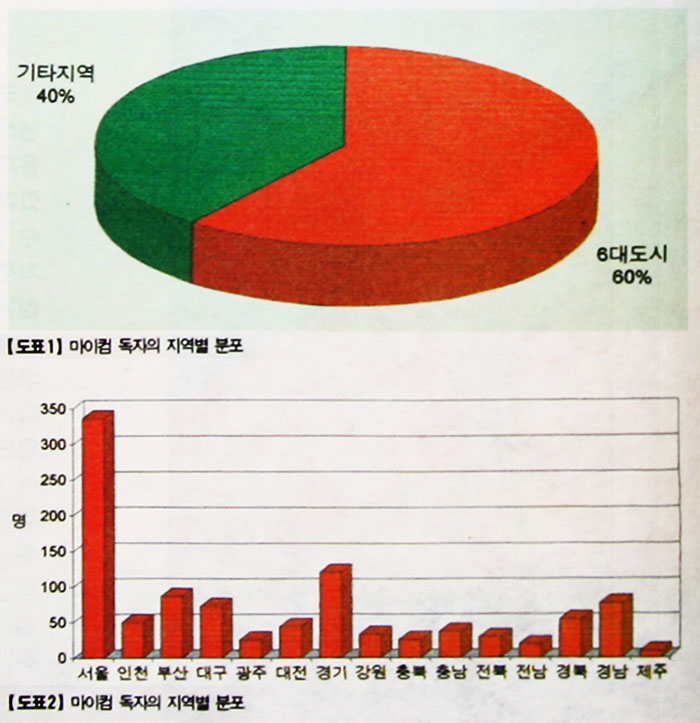 10년의 역사를 지니고 있고 국내에서 독자가 가장 많은 월간지라는 수식어가 항상 앞에 붙어다니는 마이컴. 컴퓨터를 다루는 초보자나 학생이라면 마이컴을 모르는 사람은 거의 없다. 따라서 마이컴 독자를 대상으로 하는 설문조사가 전체 컴퓨터 사용자를 대변할 수 없겠지만, 한편으로는 이 정도 규모의 월간지 독자층이라면 국내 컴퓨터 환경을 어느 정도 대표할 수 있을 것이라고 생각한다. 이에따라 본지는 2년마다 전체 독자를 대상으로 설문조사를 실시하고 있다.