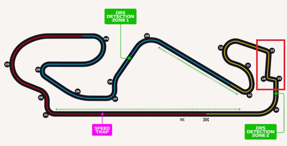 위 사진은 작년의 서킷인데 14번, 15번가 있었지만 이번 시즌에는 저 두코너가 삭제되고 직선으로 이어져서 바로 마지막 코너로 들어오게 되었습니다.