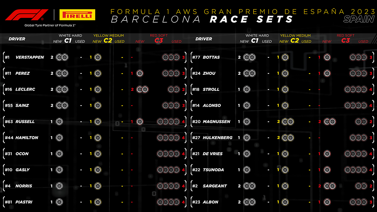 베르스타펜과 페레즈, 그리고 사전트는 미디엄타이어를, 피트레인에서 출발하는 르끌레르는 하드타이어를 장착했으며 그외 모든 드라이버는 소프트타이어를 장착하고 나왔습니다.