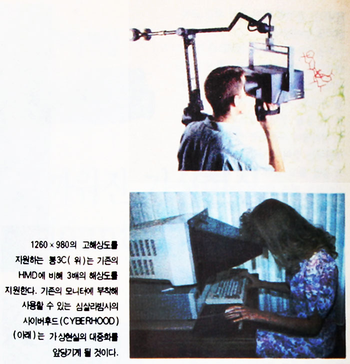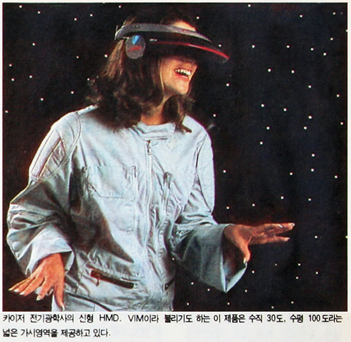 예로 카이저 전기광학사는 지금까지 10만달러 이상의 고가 HMD만을 생산하다가 작년 시그래프 전시회에서 VIM (Vision Immersion Module)이라는 저가 HMD를 선보였다. 이 회사는 또 자사의 생산 기술을 오락실용 게임기 개발사에 판매해 환상적인 게임기 개발을 앞당기는데 일익을 담당하게 될 것이다.