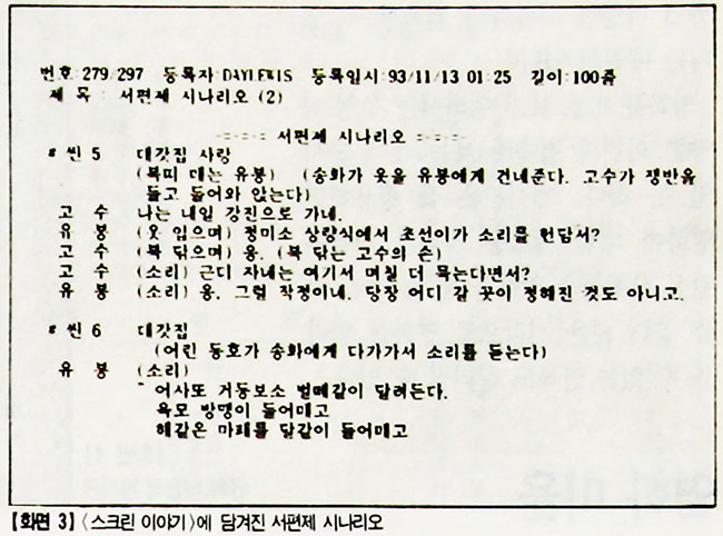 기존에도 통신 동호회란에 영화에 관련된 동호회가 있어왔지만, 개인이 아닌 영화 제작사에서 영화 관련 정보의 체계적인 데이터베이스화 작업에 착수했다는 것은 여간 반가운 일이 아니다. 이제 하이텔 통신 서비스를 통해 영화 마을에 들어가 보자.