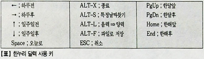 한누리 달력을 이용하여 직접 달력을 만들어 보자. 이 프로그램은 VGA 전용 모드이며 자체 프로그램에 한글이 내장되어 있어 한글로 된 깔끔한 달력을 볼 수 있다.