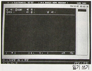처음 나타나는 데모 프로그램에서 일기쓰기를 실행하려면 <F2>키를 사용하고, 도움말이 필요한 경우에는 <F1>키를 누른다. 간단한 사항은 일기장 아래에 표시되어 있으므로 쉽게 알 수 있고, 나머지 자세한 사용법은 도움말을 이용하면 된다.