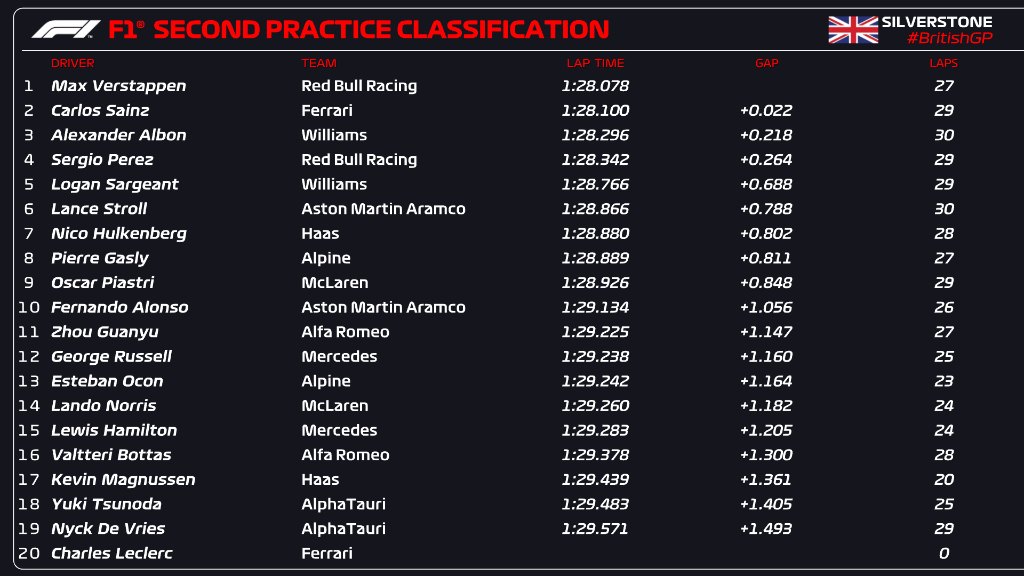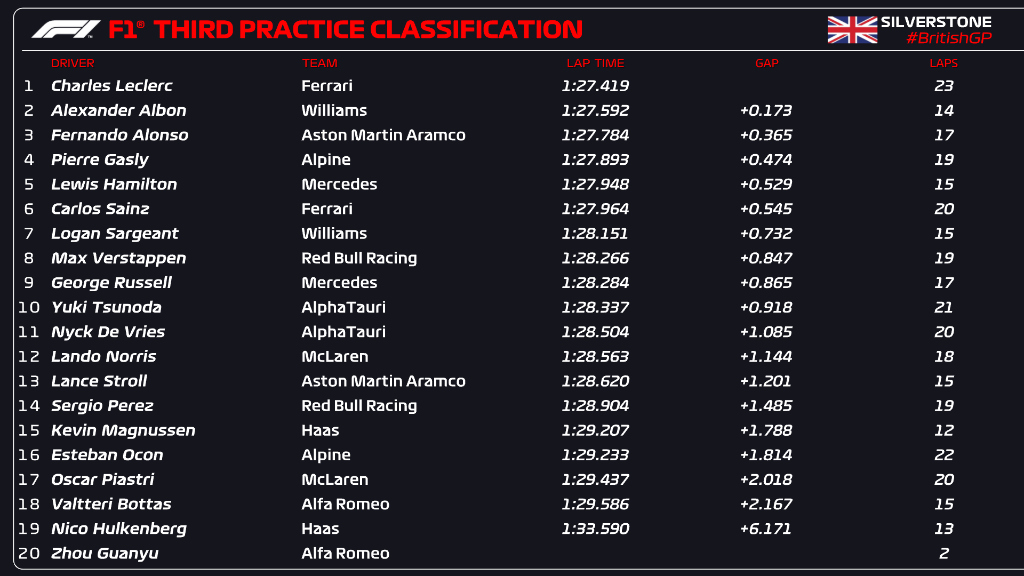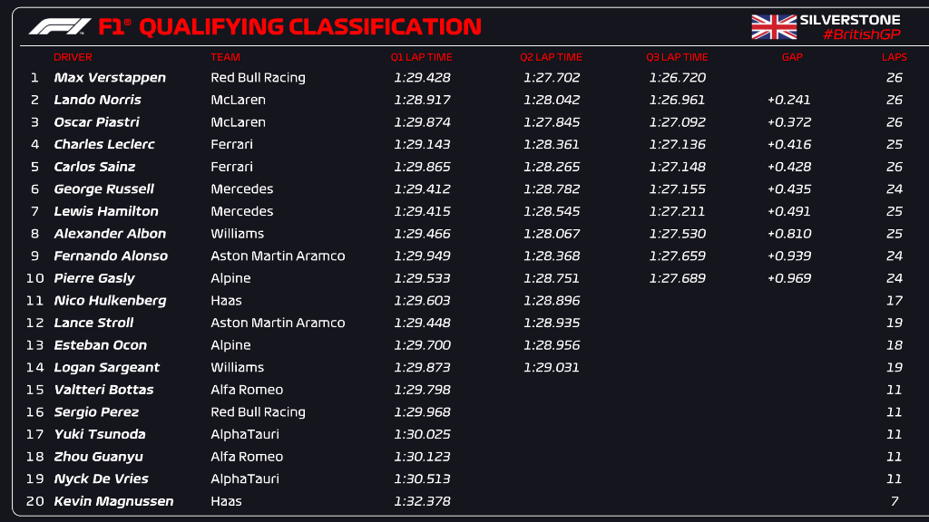 (F1 2023 British GP Qualifying Results)
