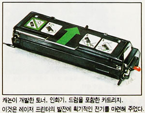 데스크톱 레이저 프린팅의 획기적 전기를 마련한 것은 아마도 캐논이 개발한 카트리지 시스템의 덕택일 것이다. 캐논은 엔진을 연구하고, 휴렛팩커드가 엔진 외의 부분과 프린터 언어를 개발하는 계획에 휴렛팩커드의 엔지니어들이 동의했다.
