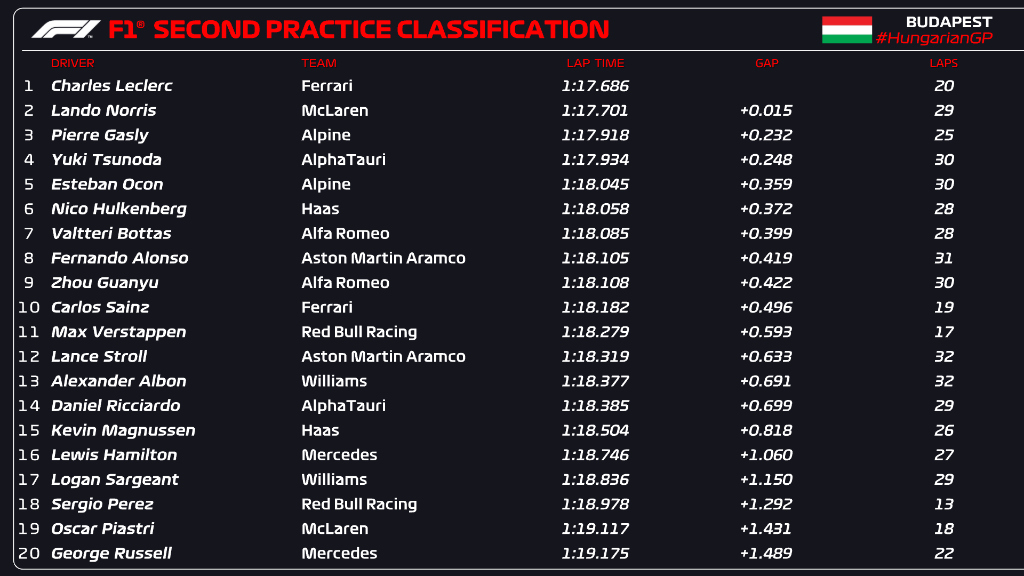 F1.2023.R12 - 헝가리 그랑프리 예선 결과 (F1 2023 Hungary GP Qualifying Results)