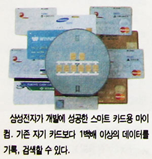 삼성전자는 고도의 기술로 중앙처리장치와 반도체 기억소자를 결합시킨 스마트 카드용 마이컴(MICOM)을 국내 개발함으로써 카드 한장으로 신분증, 신용카드, 회원증의 기능까지 모두 수행할 수 있는 시대로 바싹 다가섰다.