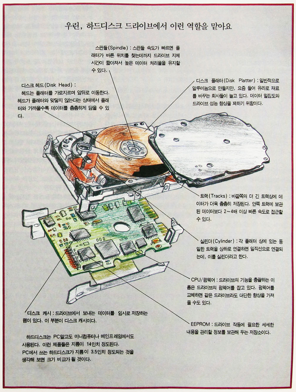이런 현실을 이해 한다면, "아니, 또 하드디스크야"라 는 소리는 금새 사그라들 듯하다. 결코, 하드디스크를 편애함이 아니라 그만한 무게를 지니고 있음을 이해하라는 말이다. 하드디스크 드라이브는 커녕 플로피디스크 드라이브도 사용자가 원해야 달수 있었던 8비트 시절을 떠올리면 격세지감이란 단어가 입안 가득 맴돌지만, 그건 지나가버린 추억속의 옛 이야기다. 존재 여부보다는 용량이 얼마냐가 요새 관심거리다.