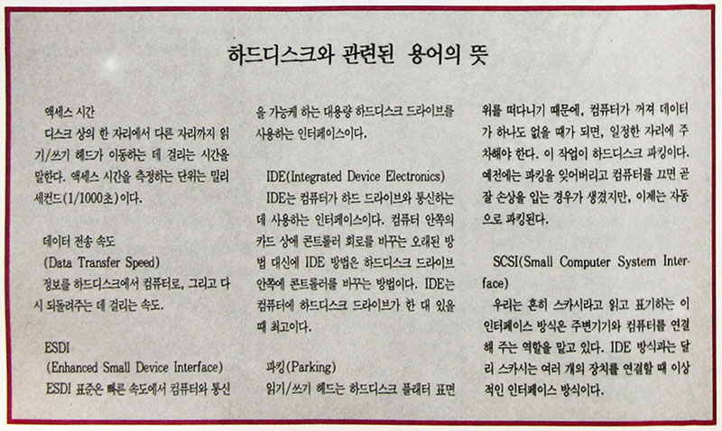40MB 하드디스크에 감탄하던 것도 불과 2,3년 전 일이다. 지금은 100MB, 120MB, 심지어 200MB, 기가바이트 하드디스크까지도 등장하고 있는 추세다.