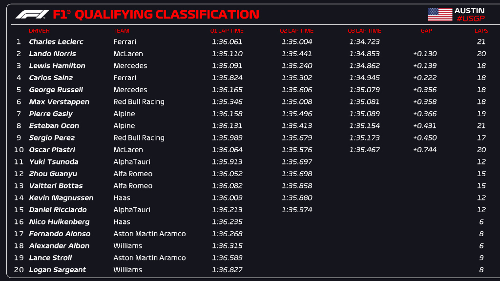 (F1 2023 US GP Qualifying Results)