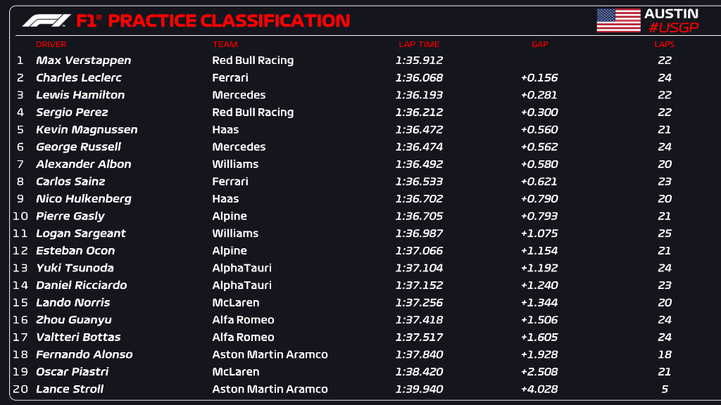 F1.2023.R19 - 미국 그랑프리 예선 결과