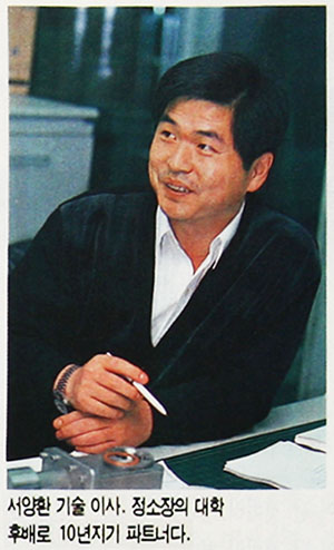 정 소장의 장점은 바로 자신의 특허 기술에 있다. 모든 부분을 모듈화해 작동 실험을 할 수 있으므로, 그만큼 부담이 줄어드는 것이다. (주) 뉴텍컴퓨터의 노트북은 자사 특허의 확장 슬롯을 제공하고 있다. 그는 이 부분을 이용해 기존의 노트북에서 매킨토시 기능만을 이 슬롯을 통해 시험해 볼 수 있어 타 회사가 전체를 개발해야 하는 것보다는 부담이 훨씬 줄어들게 된