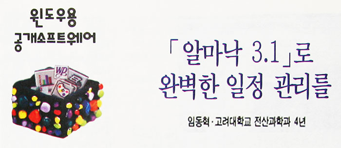 친숙하지 못한 윈도우용 애플리케이션을 좀 더 효과적으로 사용하기 위해 공개 소프트웨어나 셰어웨어를 이용하는 것도 좋은 방법일 것이다. 이번호는 개인일정 관리 프로그램인 「알마낙 3.1」을 사용해 보자.