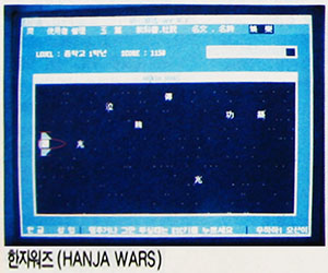 그리고 이 프로그램의 특징은 게임 형식을 통해 딱딱한 한자를 재미 있게 즐길 수 있다는 것이다. 여기에는 한자 짝짓기 게임, HANJA WARS, 한자 십자말 풀이가 있는데 이 중에서 한 개만 소개해 보겠다. 한자워즈(HANJA WARS)는 무수히 날아오는 한자 운석을 부수며 우주를 탐험하는 게임이다.