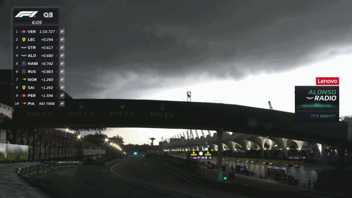 기상천외한 날씨를 보였던 예선전이였습니다. Q3 시작때부터 검은 먹구름이 모여들기 시작하더니 드라이버들이 첫 주행을 마치고 나서는 서킷 전체가 어둠에 휩싸이며 마치 밤처럼 컴컴해지는 광경이 펼쳐졌습니다. 이로 인해 모든 드라이버들의 Q3 첫 주행의 기록이 상당히 좋지 않았습니다.