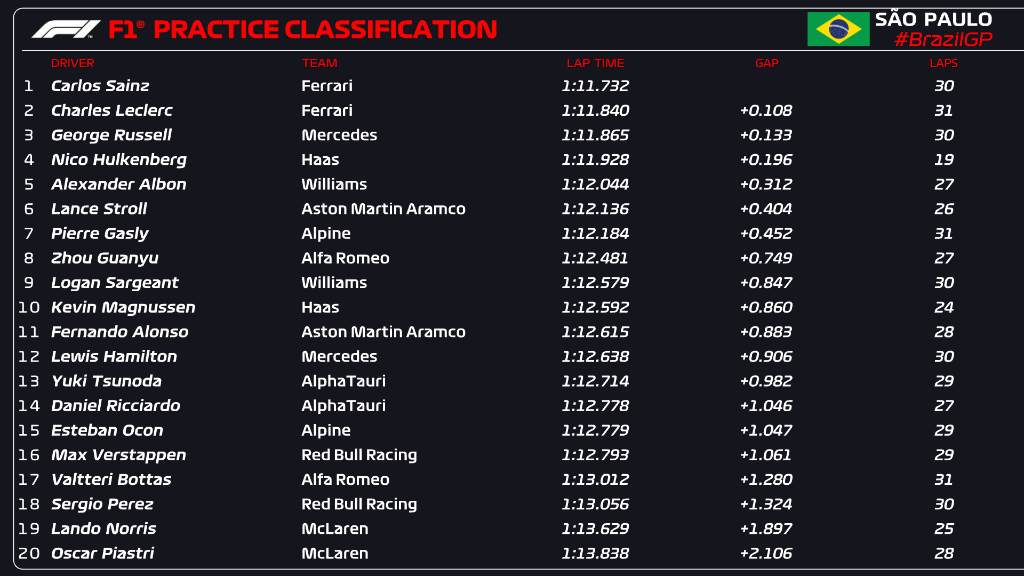 F1.2023.R21 - 브라질 그랑프리 예선 결과 (F1 2023 Brazil GP Qualifying Results)
