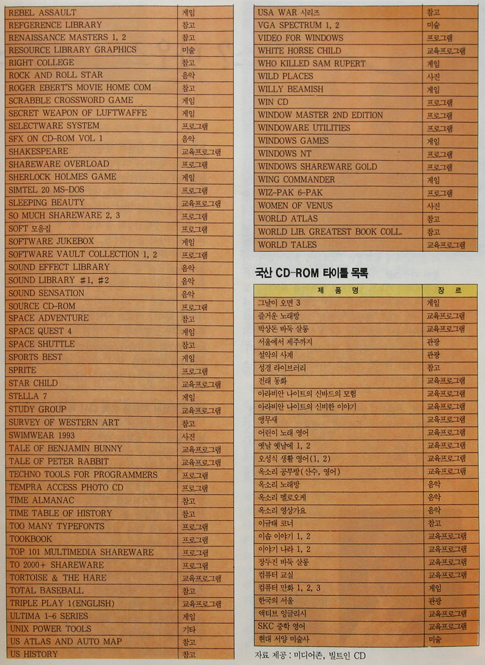 국내에 소개되어 있는 CD-ROM 타이틀은 모두 350여 종류가 되며 그 중에서 국내에서 개발된 CD-ROM 타이틀은 40가지가 있다. 이렇게 많은 CD-ROM 타이틀 중 내게 필요한 것은 어떤 것일까? 여기서는 각 부분에 따라 인기가 있다고 소문난 제품들을 소개한다.