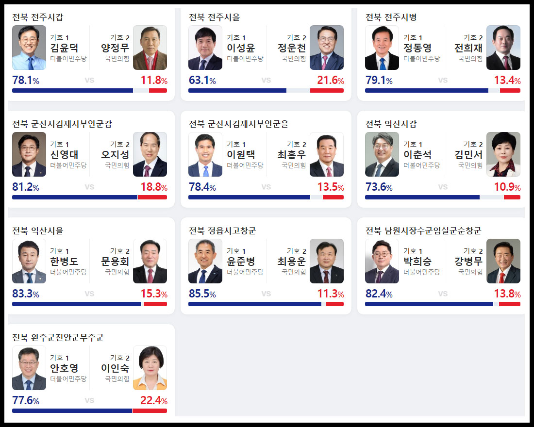전라북도 출구 조사 예상