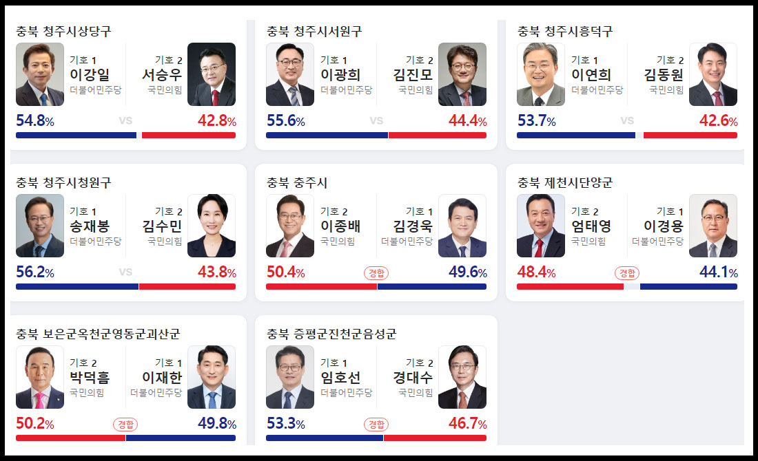 충청북도 출구 조사 예상