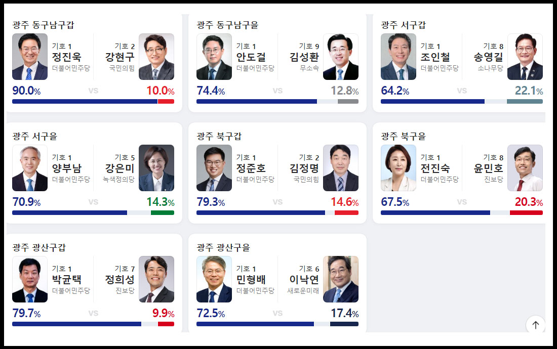 광주광역시 출구 조사 예상