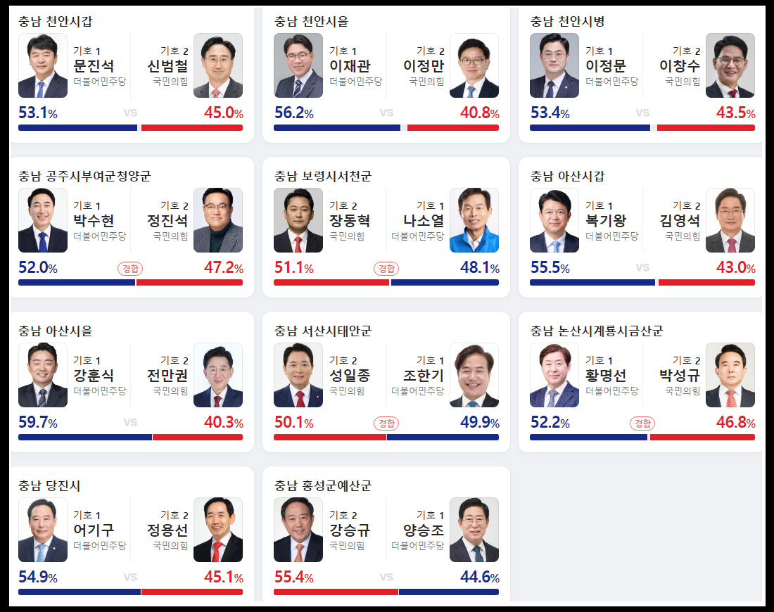 충청남도 출구 조사 예상