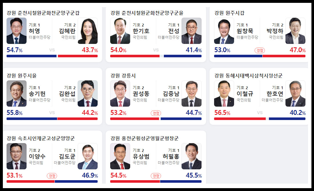 강원도 출구 조사 예상