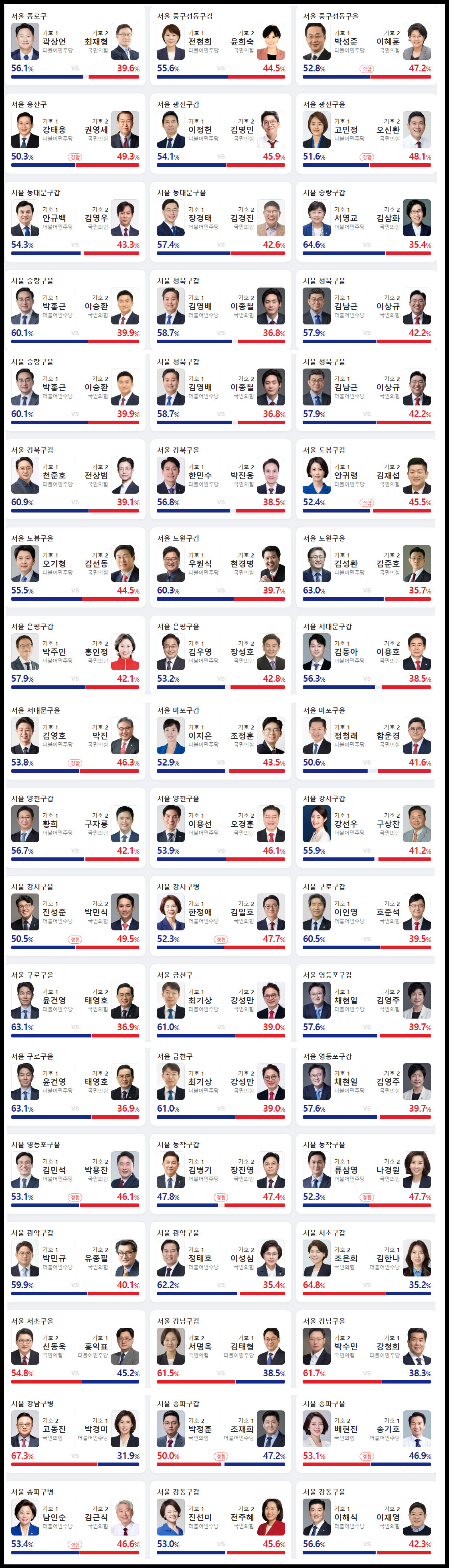 2024년 총선(22대) 전국 모든 지역 출구조사 결과