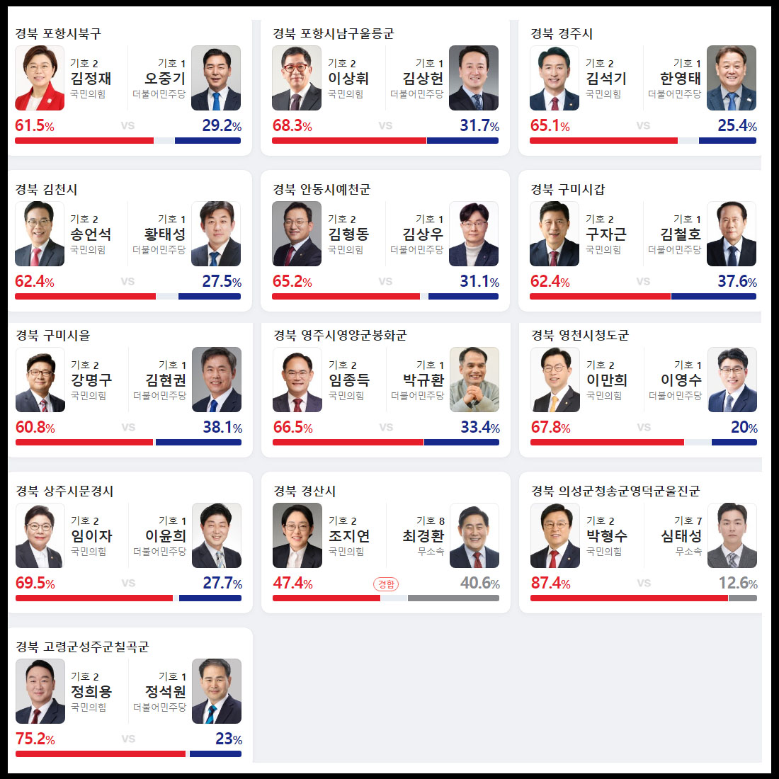 경상북도 출구 조사 예상