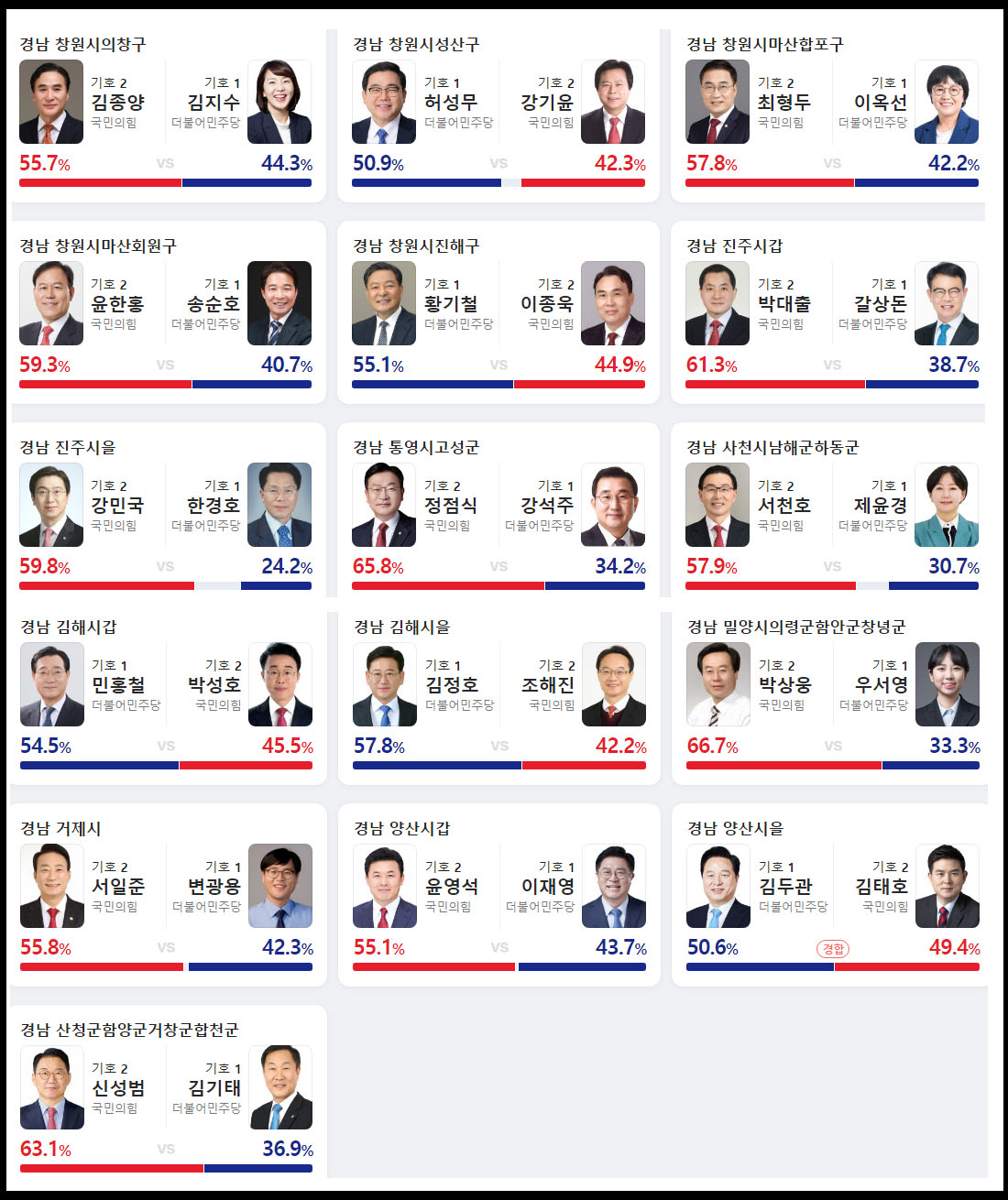 경상남도 출구 조사 예상