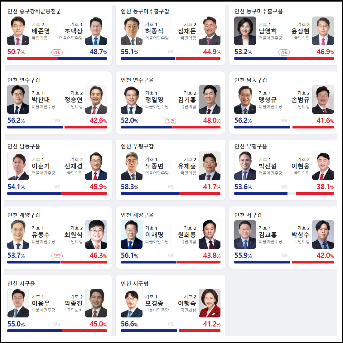 인천광역시 출구 조사 예상