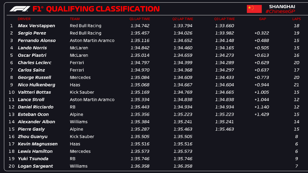(F1 2024 China GP Qualifying Results)