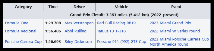 이 서킷은 2022년 F1 그랑프리 캘린더에 포함된 마이애미 그랑프리를 위해 트랙 디자이너인 Apex Circuit Design이 F1 경기에 맞게 설계했으며 새롭게 만들어지는 트랙과 기존 도로를 함께 사용하게 됩니다. 또한 그랑프리가 끝나면 서킷이 해체되고 다시 하드록 스타디움 시설로 돌아갑니다.