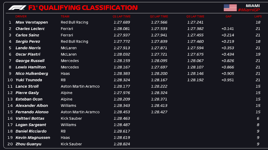 (F1 2024 Miami GP Qualifying Results)