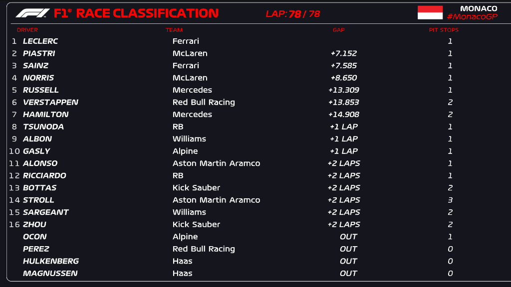 ( F1 2024 Monaco GP Race Results )