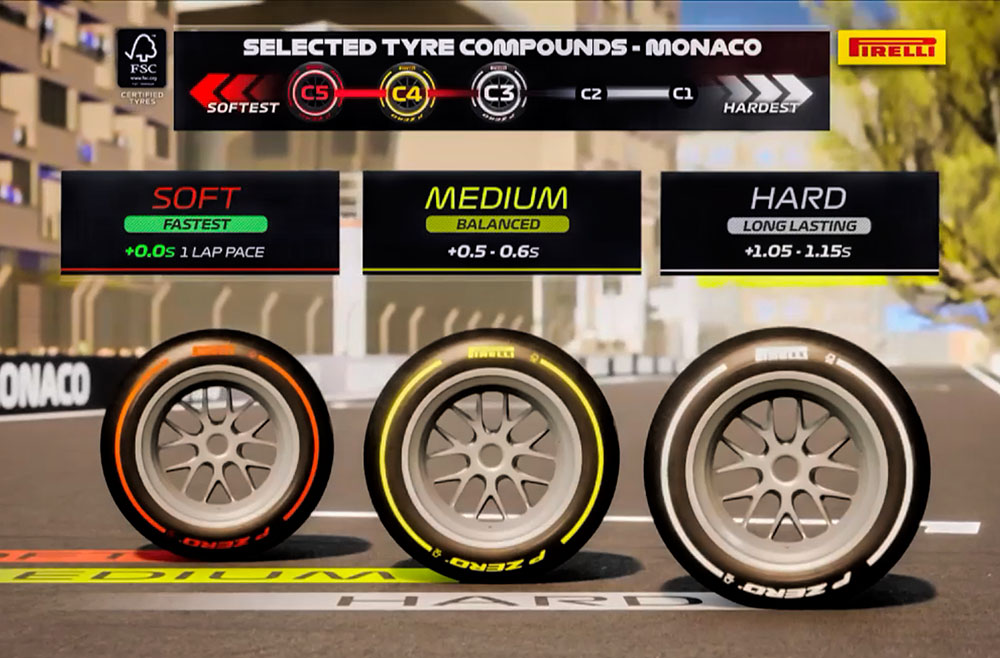 사용 타이어 세트( C3 하드◎, C4 미디엄◎, C5 소프트◎ )