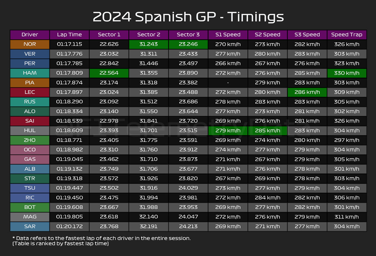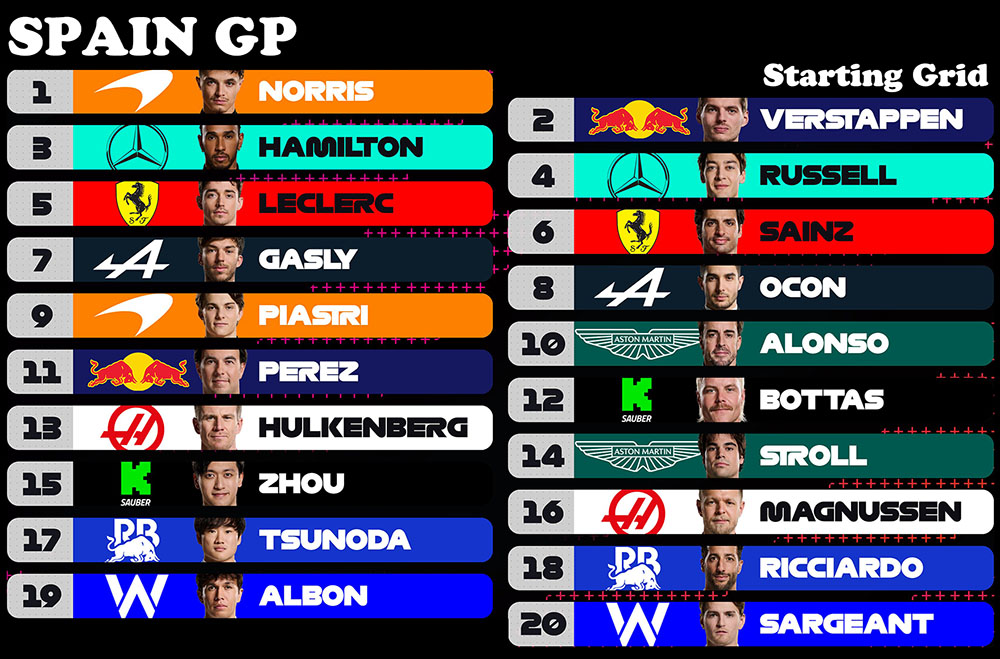 | F1.2024.R10 - 스페인 그랑프리 예선 결과 (F1 2024 Spain GP Qualifying Results) (0) | 2024.06.22 |