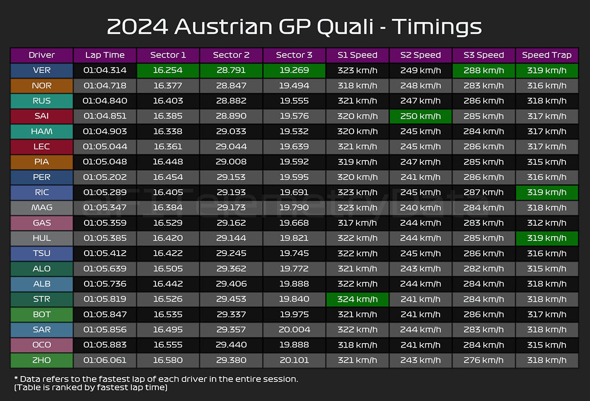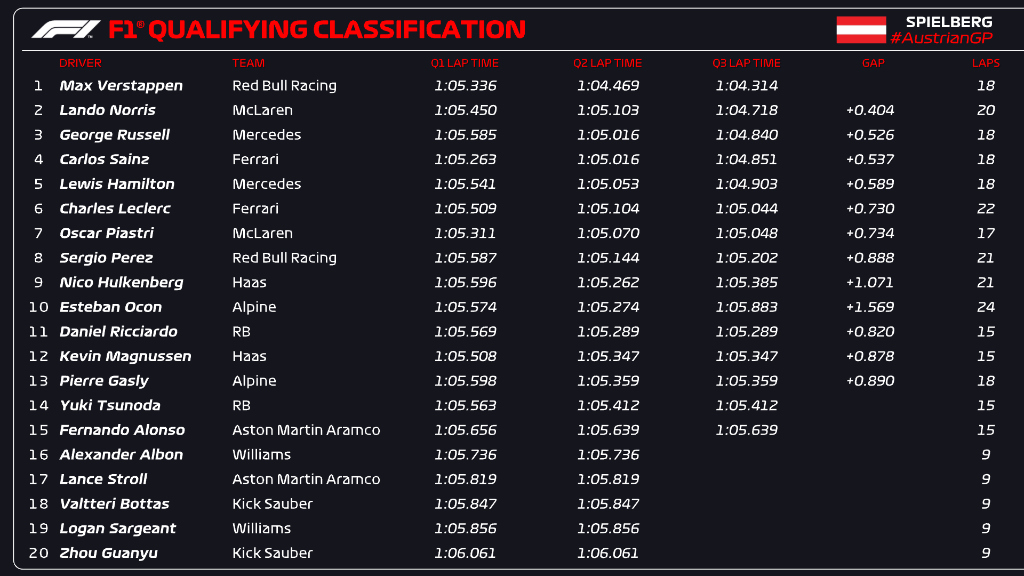 (F1 2024 Austria GP Qualifying Results)