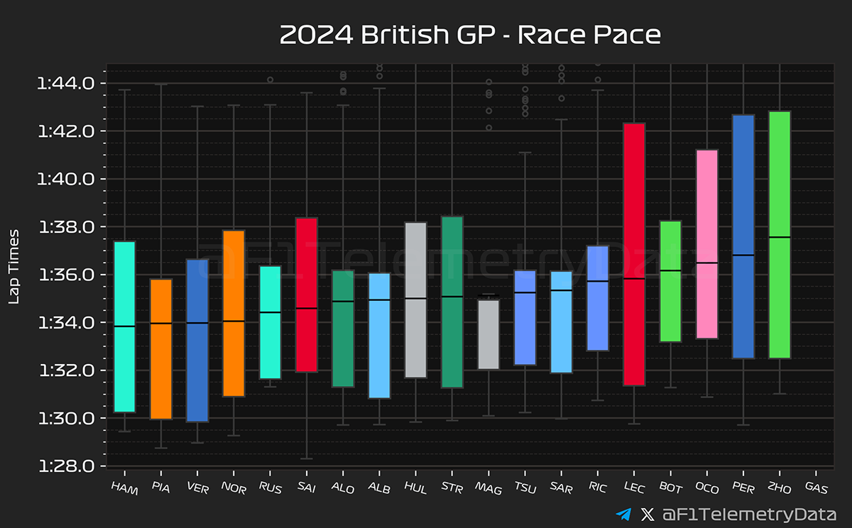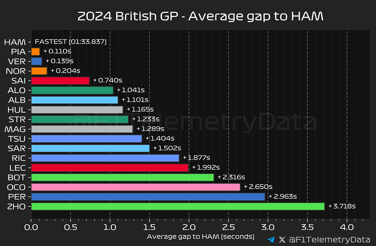 해밀턴 -2.5초- 노리스 -3.0초- 베르스타펜 -10.0초- 피아스트리