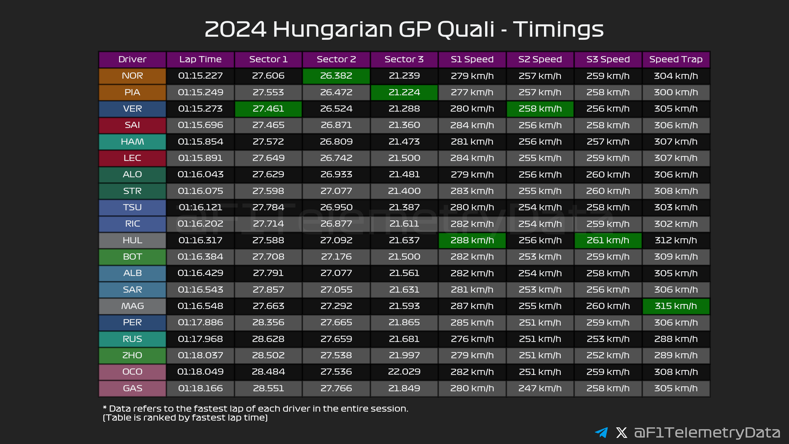 F1.2024.R13 - 헝가리 그랑프리 예선 결과 (F1 2024 Hungary GP Qualifying Results)