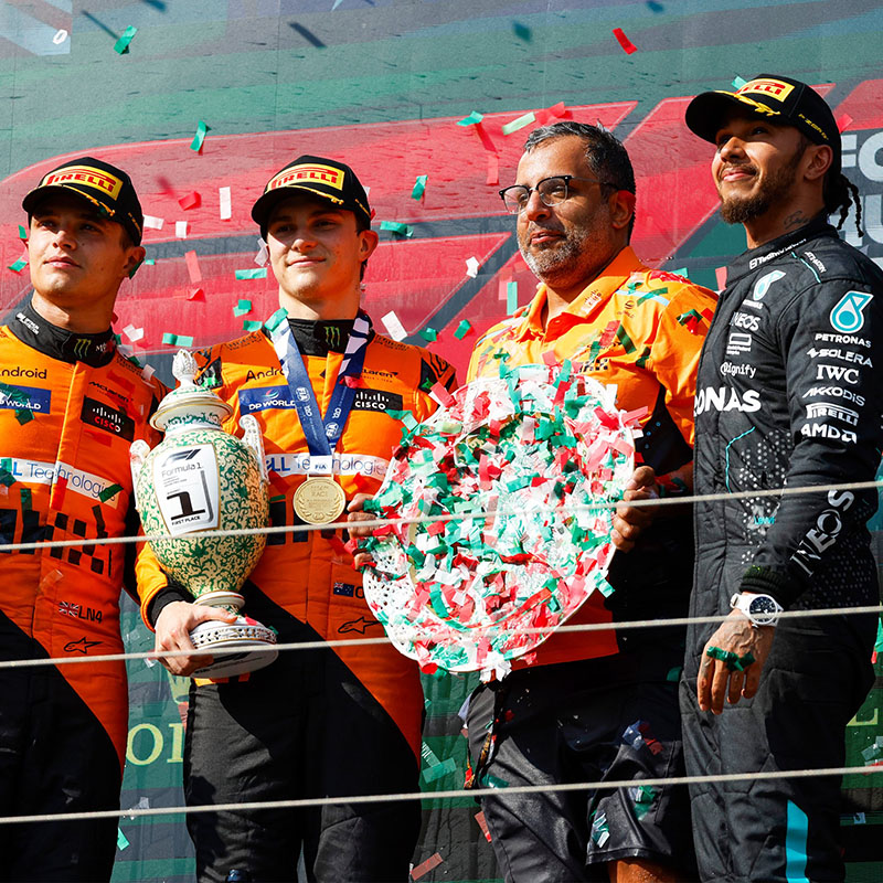 우리 팀에게는 놀라운 날이다. 정말 기쁘다. 오랜 여정이었고, 오늘 우리는 당당하게 해냈다. 오늘 우리는 훌륭하게 해냈고, 피아스트리의 스타트가 좋아 나를 추월했고 레이스를 전반적으로 잘 컨트롤 했다. 두 명의 훌륭한 드라이버와 놀라운 팀이 함께해서 기쁘다. 오늘은 우리의 날이었다.