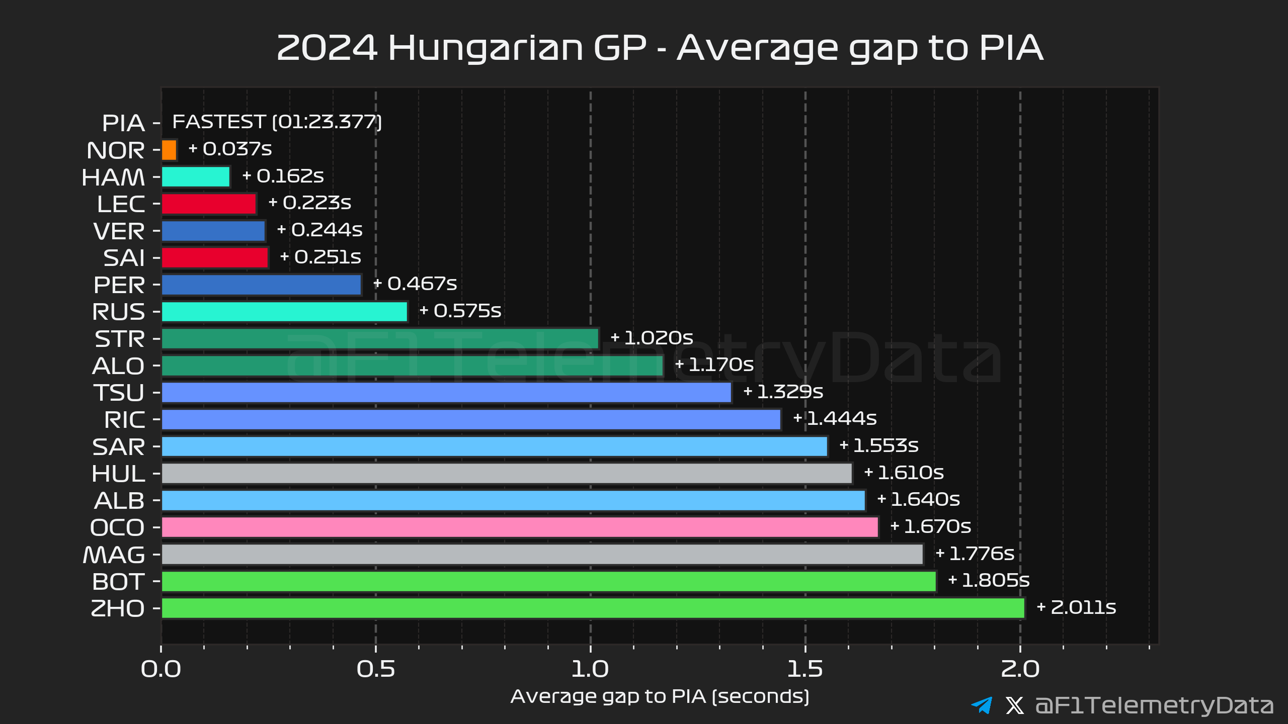 LAP 11 피아스트리 -3.0초- 노리스 -12.0초- 베르스타펜 -1.2초- 해밀턴